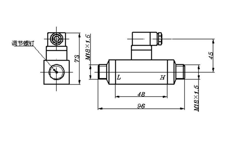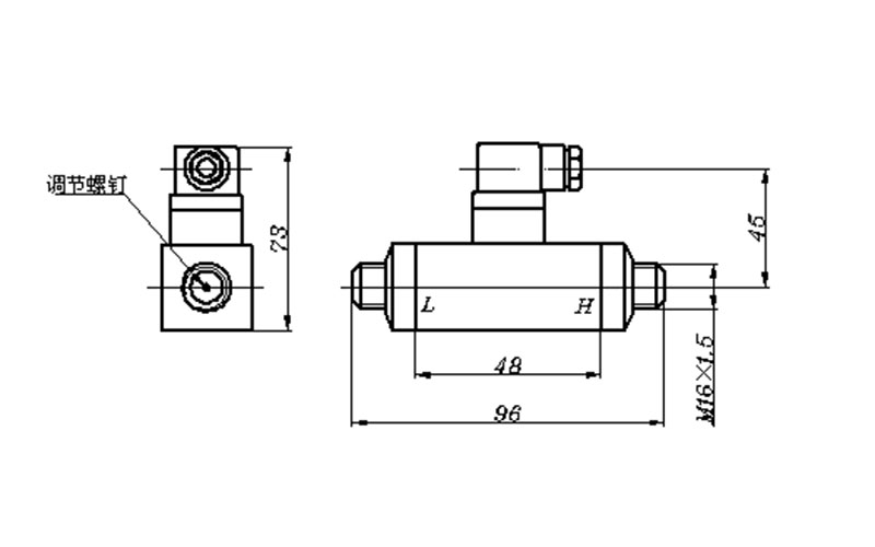 以M2內六角螺釘扳手調整低壓接口內的差壓設定值螺母(順時針方向旋轉,差壓設定值增大,逆時針方向旋轉,差壓設定值減少),使其在120KPa附近切換;