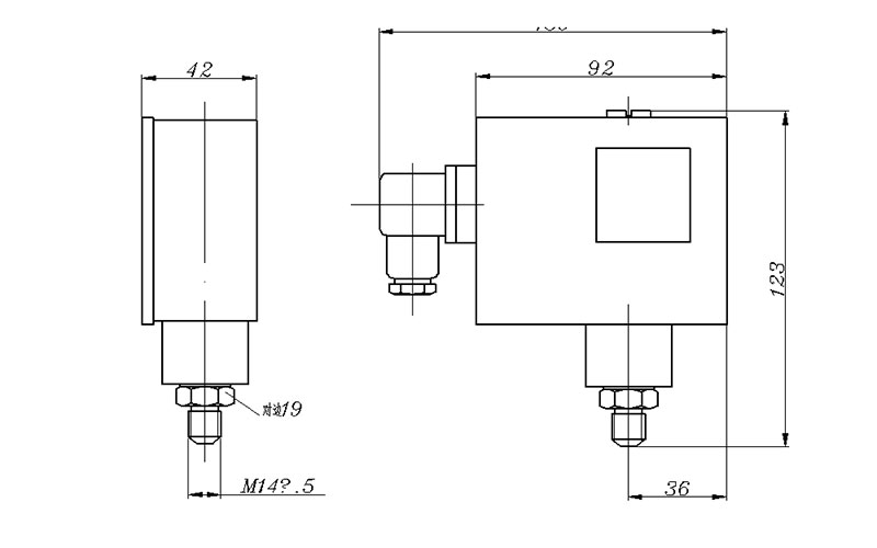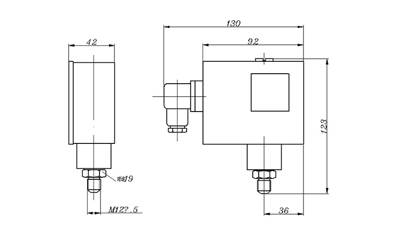 502/7DC(小型)壓力開關(guān)外形尺寸及安裝尺寸(單位:mm)
